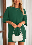 “I bought this two piece set for my trip last month and wore it on the plane — I’ve never been so comfortable while still looking put-together! The fabric is super soft, lightweight, and breathable. The oversized shirt drapes perfectly, and the biker shorts stay in place without digging in. I’ve already worn it for errands and lazy Sundays at home. Definitely ordering more colors!”